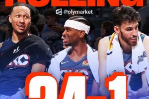 雷霆豪取16連勝創(chuàng)搬遷至俄城以來的最長連勝紀錄,24勝1負也追平NBA最佳開季戰(zhàn)績紀錄(勇士,2015-16賽季)。