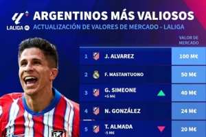 西甲阿根廷球員身價(jià):小蜘蛛1億歐最高,馬斯坦托諾5000萬歐次席