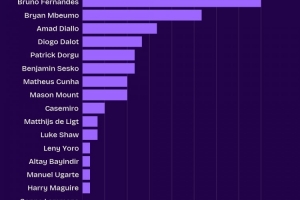 體育資訊10月31日訊 數(shù)據(jù)機構(gòu)squakwa統(tǒng)計了本賽季曼聯(lián)隊內(nèi)英超創(chuàng)造機會情況,B費仍獨自領跑。