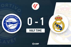 半場結(jié)束,皇馬暫1-0阿拉維斯。