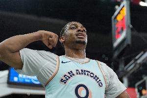 體育資訊10月31日訊 馬刺今日107-101擊敗熱火,賽后,本場貢獻11分3板1助攻的馬刺球員凱爾登-約翰遜接受媒體采訪。