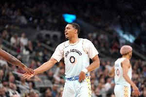 體育資訊10月31日訊 馬刺今日107-101擊敗熱火,賽后,本場貢獻11分3板1助攻的馬刺球員凱爾登-約翰遜接受媒體采訪。