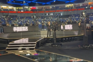 體育資訊10月31日訊 管澤元分享現(xiàn)場(chǎng)照片:這次梅奔的解說(shuō)席距離近到是我翻過(guò)去就可以站在Faker身后看的程度。