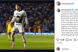 墨西哥美洲獅與拉姆塞解約,拉姆塞社媒寫道:“我想感謝墨西哥人民對我的友善與慷慨,讓我和我的家人在墨西哥城感受到如此溫暖的歡迎。我還要特別感謝主教練、教練組,尤其是醫(yī)療團隊,在我受傷的艱難時期給予我的幫助。在他們的支持和努力下,我恢復(fù)了狀態(tài),為接下來的比賽做好了準(zhǔn)備,期待為美洲獅貢獻自己的最好表現(xiàn)?!?/p>