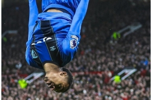 本場(chǎng)比賽雙方拉開架勢(shì)大打?qū)?zhàn),比賽走勢(shì)也是跌宕起伏,英超官推曬出一張伯恩茅斯球員克魯皮進(jìn)球后空翻慶祝的照片,配文寫道:“如果用一張圖片描述本場(chǎng)比賽的話??”