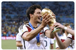 德國隊(duì)官方社媒曬出胡梅爾斯與大力神杯的合照,配文:“生日快樂,胡梅爾斯!2014年世界杯冠軍?!?/p>