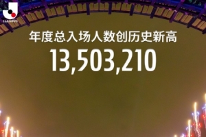 體育資訊12月16日訊 根據(jù)J聯(lián)賽官方統(tǒng)計,今年J聯(lián)賽年度觀眾總數(shù)達到了13503210人次,創(chuàng)歷史新高。