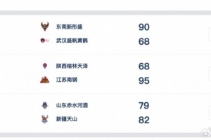 陜西榆林天澤 68-95 江蘇南鋼,江蘇女籃四人得分上雙,許晨妍20分11籃板,阿利恩16分11籃板,羅欣棫14分,孫宇12分9籃板。陜西女籃僅一人得分上雙,庫克斯23分7籃板。