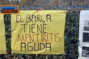 對于拉波爾塔的言論,皇馬球迷顯然有著不同的意見。在俱樂部訓(xùn)練基地外,皇馬球迷打出了巴薩“撒謊成性”的橫幅。