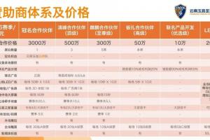 其中,2026賽季云南玉昆設(shè)立了1個冠名合作伙伴席位,參考價值3000萬元,而其他各檔贊助席位則從10萬-500萬元不等。