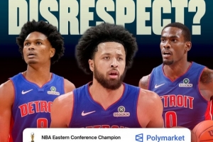 活塞隊(duì)以21勝5負(fù)的戰(zhàn)績(jī)領(lǐng)跑東部,但據(jù)預(yù)測(cè)機(jī)構(gòu)Polymarket預(yù)測(cè),他們進(jìn)入總決賽的概率僅為13% ??