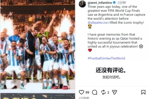 國際足聯(lián)主席因凡蒂諾社媒曬出視頻,回顧這場經(jīng)典比賽,他寫道:“三年前的今天,史上最精彩的世界杯決賽之一,阿根廷vs法國——吸引了全世界的目光,最終阿根廷隊舉起了那座標(biāo)志性的獎杯!”