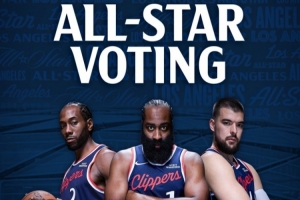 快船官方曬出海報為哈登、小卡、祖巴茨全明星拉票,寫道: