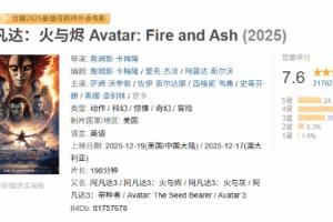 體育資訊12月19日訊?備受影迷期待的卡梅隆新電影《阿凡達(dá):火與燼》(《阿凡達(dá)3》)已于今日正式上映!截止至發(fā)稿時(shí),本作的豆瓣評分已正式出爐,獲得了7.6分的評價(jià)!