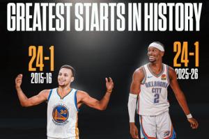 作為對比,當(dāng)年15-16年73勝的勇士,第3敗出現(xiàn)在第39場,36勝3負(fù)。