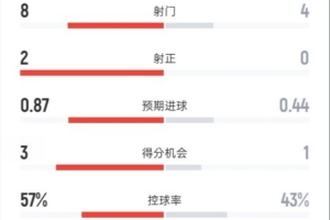 半場(chǎng)比賽數(shù)據(jù)如下: