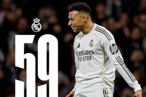 皇馬官方更新社媒動態(tài),曬出海報祝賀姆巴佩,配文:“姆巴佩追平了C羅自然年打進59球的紀錄!”