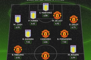 后衛(wèi):卡什(維拉,6.95分)、保·托雷斯(維拉,6.62分)、德里赫特(曼聯(lián),6.92分)、達洛特(曼聯(lián),6.75分)