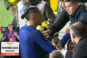 體育資訊12月22日訊 西甲第17輪比賽,巴薩在客場(chǎng)挑戰(zhàn)比利亞雷亞爾。本場(chǎng)比賽,拉菲尼亞點(diǎn)射為紅藍(lán)軍團(tuán)首開(kāi)紀(jì)錄。賽后,拉菲尼亞被西甲官方評(píng)為全場(chǎng)最佳球員。