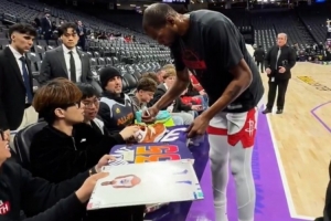 GIF——杜蘭特賽前給中國(guó)球迷簽名
