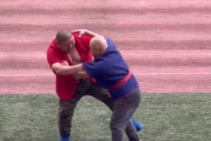 據(jù)《濟(jì)南時報》報道,本場比賽賽前進(jìn)行了暖場節(jié)目——摔跤。