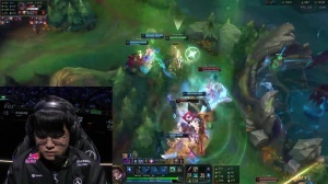從背景聲音可以聽到,在T1贏下團戰(zhàn)之后現(xiàn)場的歡呼聲非常非常激情。