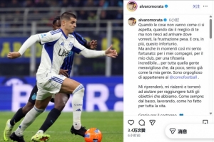 莫拉塔受傷后社媒:挫敗感很沉重,但我仍為成為科莫的一員而驕傲