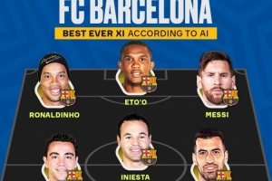 AI評巴薩隊史最佳陣:梅西、小羅、埃托奧三叉戟,哈維、小白在列