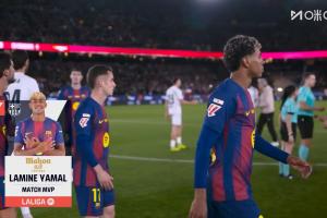 5次過人全場最多!官方:亞馬爾獲得巴薩2-0奧薩蘇納全場最佳