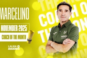 官方:擊敗西蒙尼和弗里克,黃潛主帥馬塞利諾當(dāng)選西甲月最佳教練