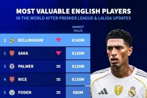 英格蘭球員身價(jià)排名:貝林厄姆1.6億歐居首,薩卡1.3億歐次席